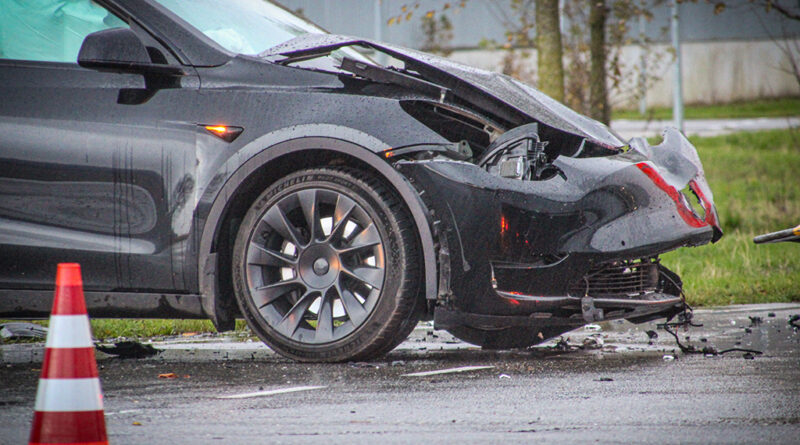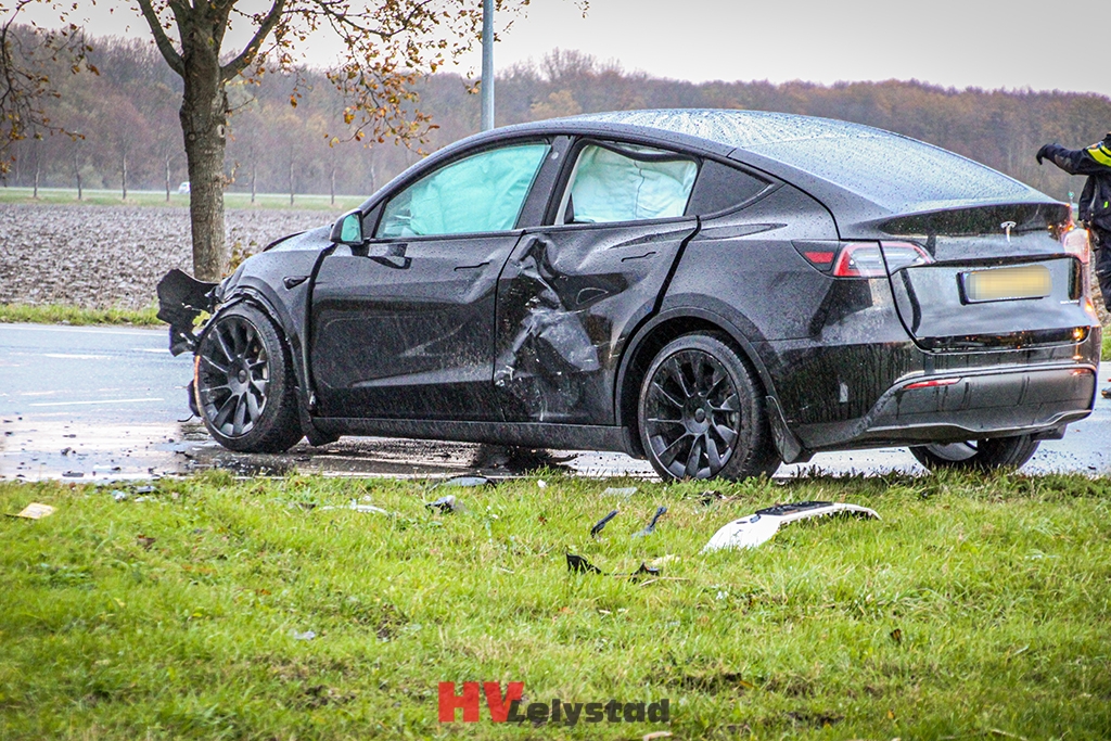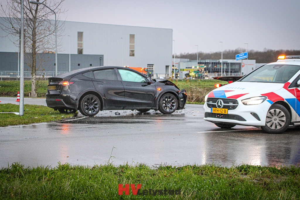 Rond 07:40 uur zijn een Tesla en een Volkswagen Up hard met elkaar in botsing gekomen op de kruising van de Albert Plesmanlaan met de Meerkoetenweg. Volgens de politie heeft de bestuurder van de Tesla de Volkswagen Up geen voorrang verleend en de auto daarbij vermoedelijk over het hoofd gezien. Door de klap raakte de Up van de weg en belandde in het water naast de rijbaan.