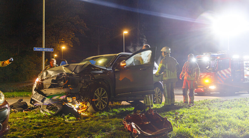 Rond 18.05 uur kwamen op de kruising van de Houtribdreef met de Badweg twee auto’s met elkaar in botsing. De bestuurder van één van de auto’s kwam bekneld te zitten en moest door de brandweer worden bevrijd. Hij was aanspreekbaar en is met een ambulance naar het ziekenhuis gebracht. De bestuurder van de andere auto kon zelfstandig zijn voertuig verlaten. Vermoedelijk is een voorrangsfout de oorzaak van het ongeval geweest. De politie doet nog onderzoek.