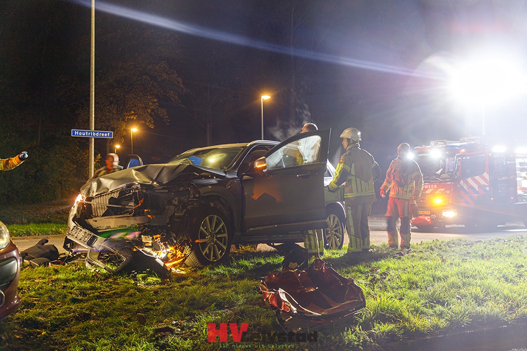 Bestuurder uit auto bevrijd door brandweer na ongeval Houtribdreef