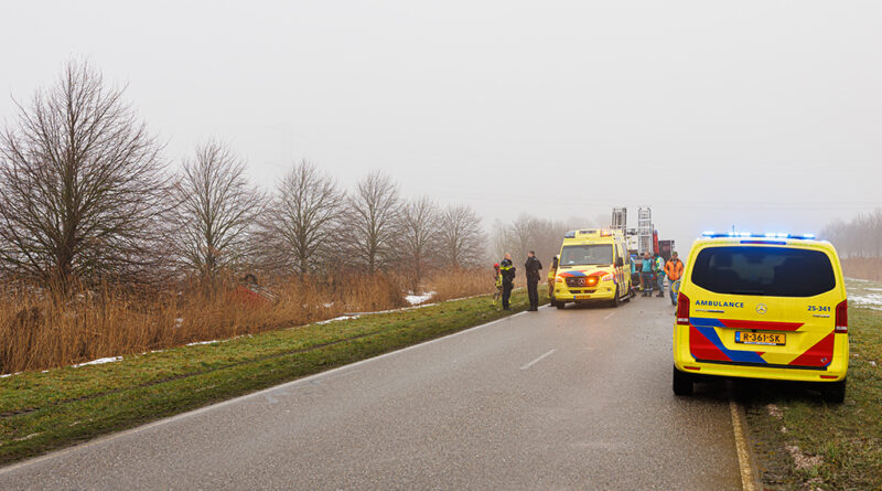 Het ongeval gebeurde kort na 09:30 uur. Langs de weg bevindt zich ook een smalle sloot, maar daarin stond nauwelijks water. De brandweer heeft de bestuurster uit het voertuig gehaald en gebruikte daarbij een loopplank om de sloot te overbruggen.