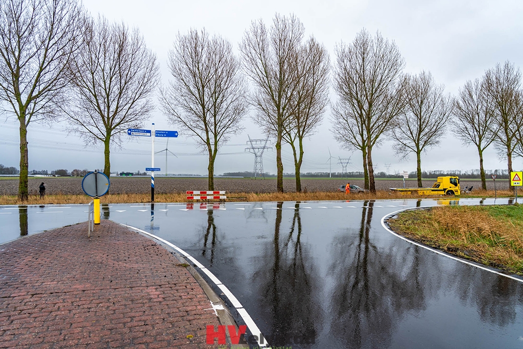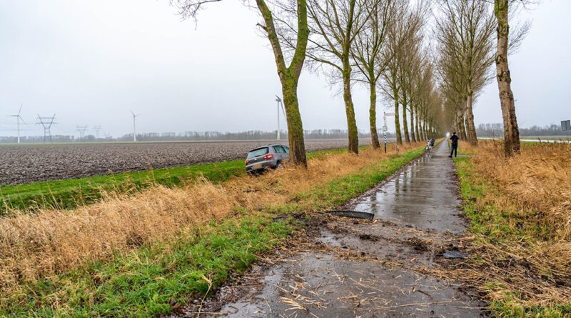 De auto kwam hierdoor van de rijbaan af en eindigde net naast een sloot. De bestuurder raakte gewond en is per ambulance overgebracht naar het ziekenhuis. Over de aard van het letsel is niets bekendgemaakt.