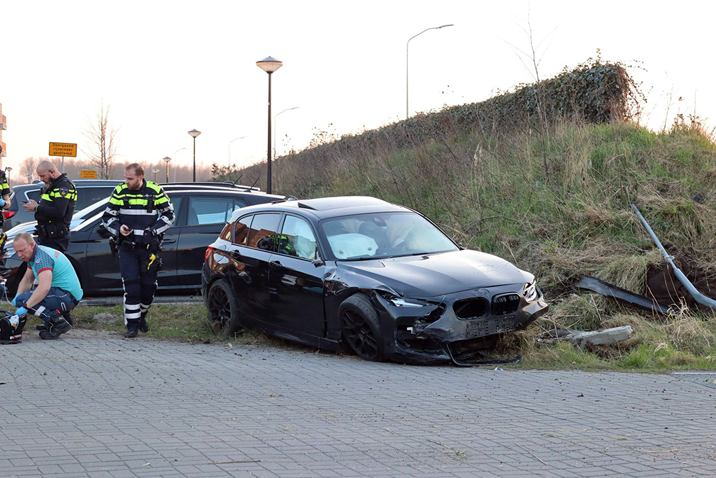 Het incident werd rond 18:30 uur gemeld bij de kruising met de Waterbies. Door nog onbekende oorzaak verloor de bestuurder de controle over het voertuig, dat zwaar beschadigd raakte en tegen meerdere verkeersborden tot stilstand kwam. Het slachtoffer is met verwondingen naar het ziekenhuis gebracht voor verdere behandeling.