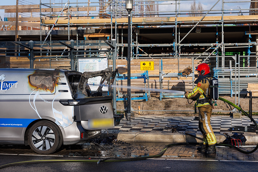 Op de Stationsdreef is woensdagmiddag een bestelbus volledig in brand gevlogen. De brand ontstond aan de achterzijde van het voertuig, dat door het vuur vrijwel volledig werd verwoest. De schade is zo groot dat het busje als verloren moet worden beschouwd.
