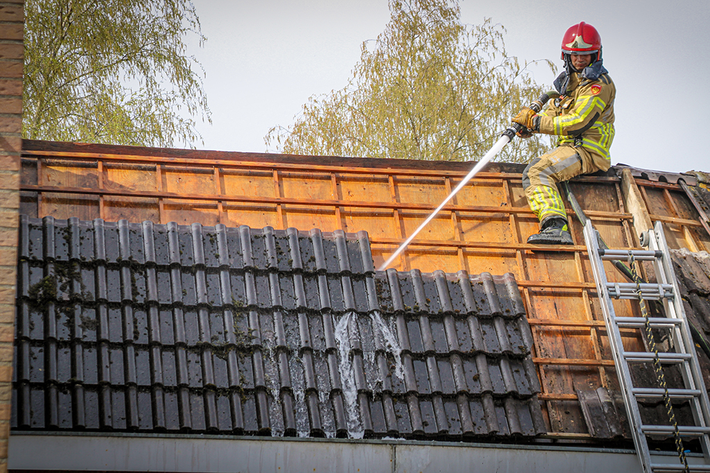 De brandweer ging via een trap naar boven en voerde sloopwerkzaamheden uit om de brandhaard te bereiken. Daarbij werden meerdere dakpannen verwijderd, zodat het vuur ook van buitenaf bestreden kon worden.