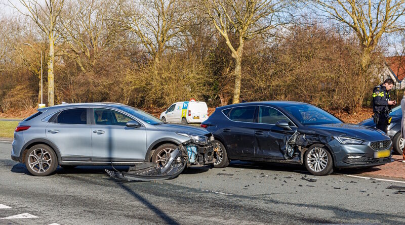 Een auto is maandagochtend tegen een boom tot gebotst na een aanrijding op de kruising van de Jol met de